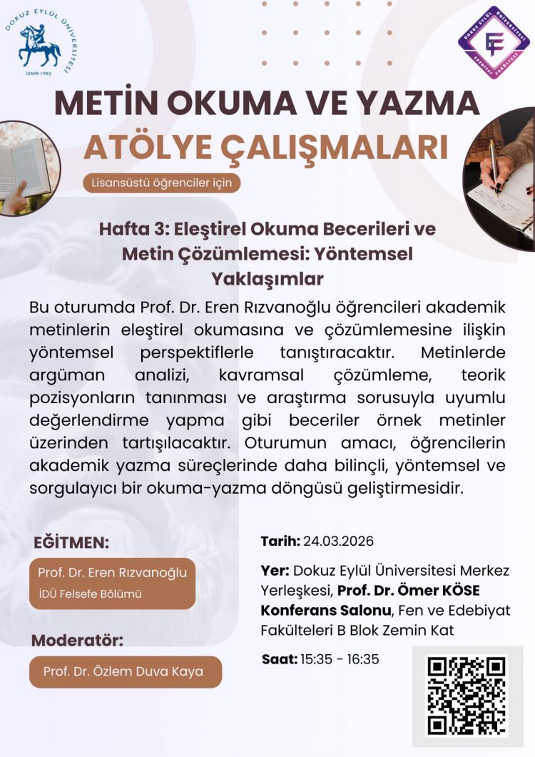 Metin Okuma ve Yazma Atölye Çalışmaları, Hafta 3 Yayınlanma Tarihi ve Saati: 23/03/2026 - 22:16 - Görüntülenme: 16
